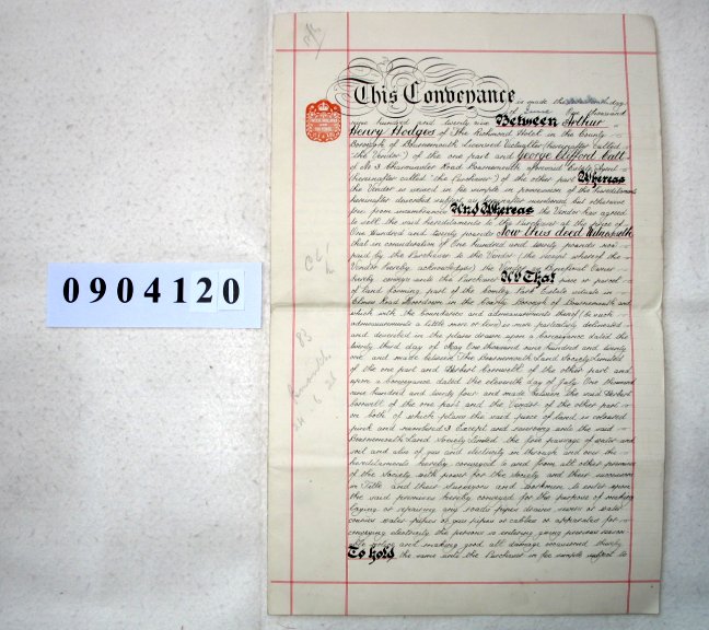 Arthur Henry HODGES of The Richmond Hotel, Bournemouth. (Licensed Victualler) George Clifford CATT of 3 Charminster Road, Bournemouth. (Estate Agent) SUBJECT Arthur Hodges is selling property in Bournemouth to George Catt for £120. It consists of a plot of land in Elmes Road on the Comley Park Estate, Moordown, Bournemouth. There is no mention of any building on the plot. It appears to have come into the hands of the vendor in July 1926. | ||||||||||||