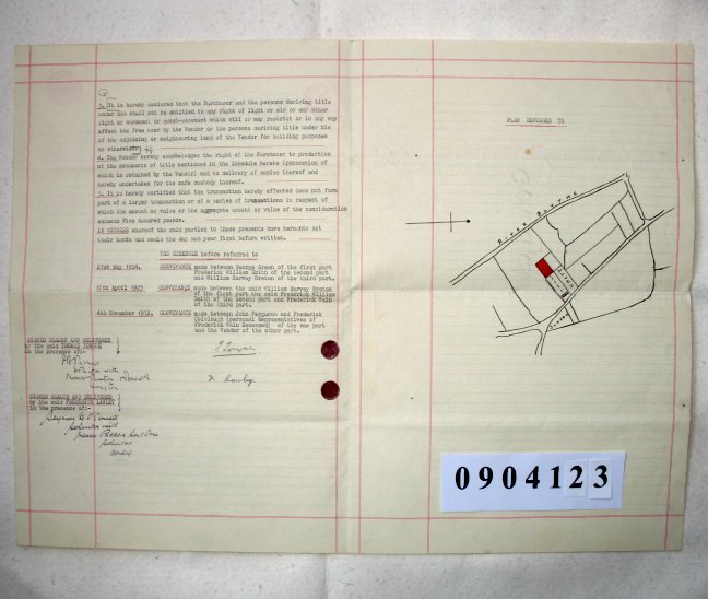 | Paper : 2 sheets 27cm x 40cm signed sealed and stamped. Typescript with plan of property. | |||||||||||