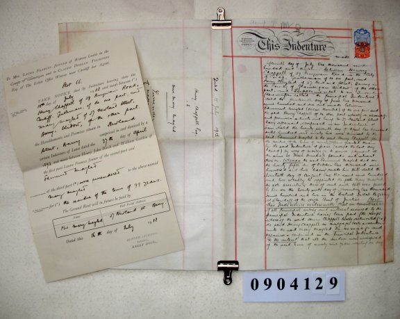 Henry CHAPPELL of Cardiff, Glamorgan, Gentleman Mary MAYLED of 27 Newland Street, Barry, Glamorgan, Widow SUBJECT We are told that in June 1901 Edmund Mayled mortgaged property at 27 Newland Street, Barry to Henry Chappell, with the property being demised to Henry Chappell for the residue of the lease by way of security. Edmund Mayled died in October 1902 having appointed Mary his wife as sole executrix. In this indenture Henry Chappell acknowledges that the mortgage has now been repaid and the property reverts to Mary Mayled. The paper letter is to Mrs Laura Frances Jenner of Wenvoe Castle, the original lessee of the property, informing her that Mrs Mary Mayled will subsequently be responsible for paying the ground rent. | |||||||||||