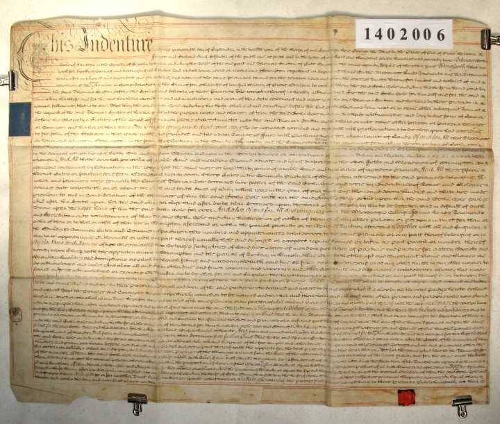 | Parchment : 1 sheet 58cm x 75cm with 1 wax seal and revenue stamp.