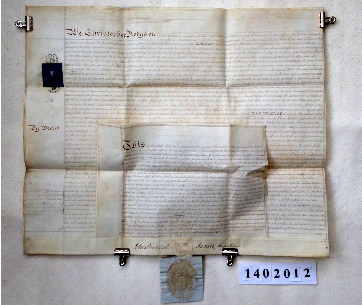 | Parchment : 1 sheet 58cm x 50cm (The Adminisration) and also a copy of Will 33cm x 27cm. Pendant seal of Leicester Commissary Court | |||||||||||