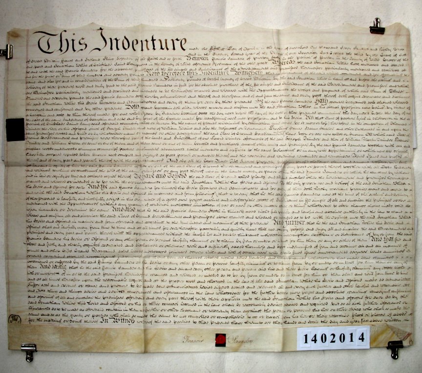 | Parchment : 1 sheet 64cm x 81cm with revenue stamp, 1 signature and seal | |||||||||||