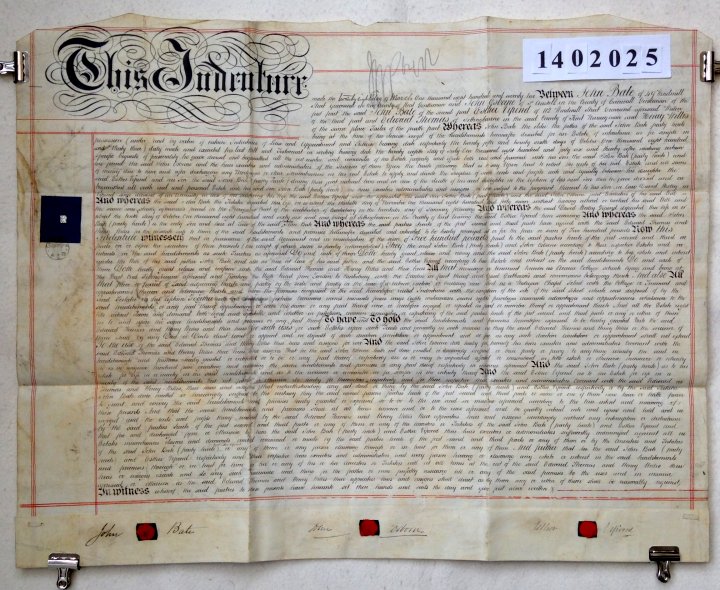 | Parchment : 1 sheet 69cm x 54cm with 3 signatures and sels, plus revenue stamps | |||||||||||