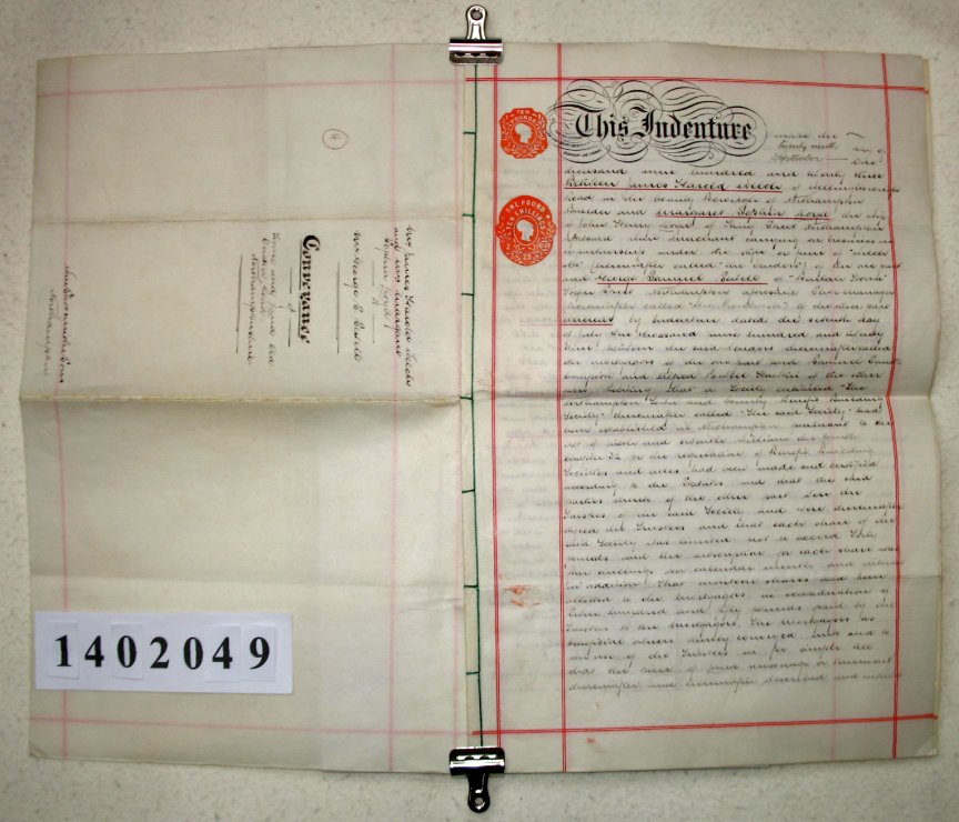 | Parchment: 3 pages 26cm x 40cm with revenue stamps, 3 signatures and seals | |||||||||||