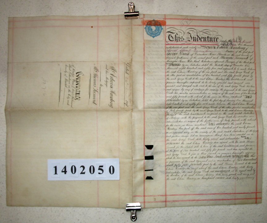 | Parchment: 2 sheets 27cm x 40cm with revenue stamp, 3 signatures and seals | |||||||||||